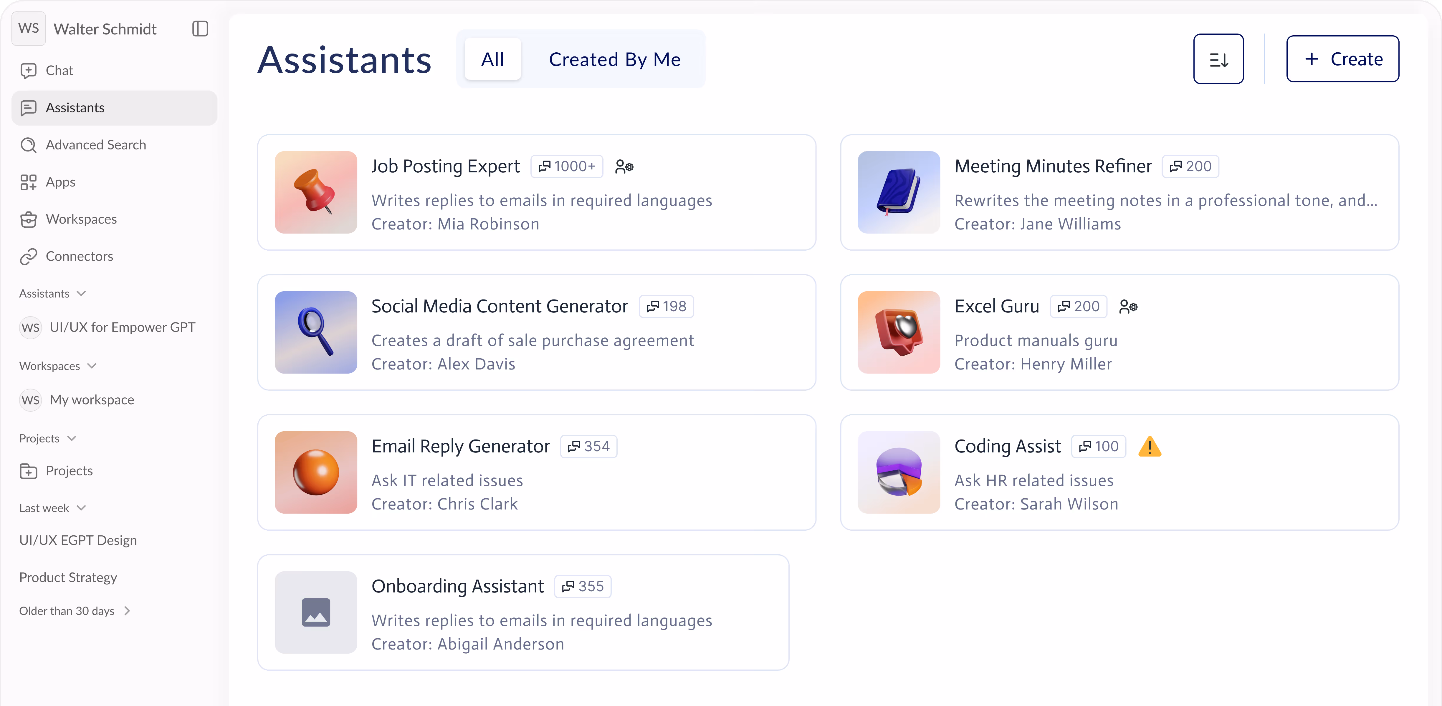 Einfache Anpassung: Erstellen Sie Assistenten mit einer benutzerfreundlichen Oberfläche – ganz ohne Programmierkenntnisse.
