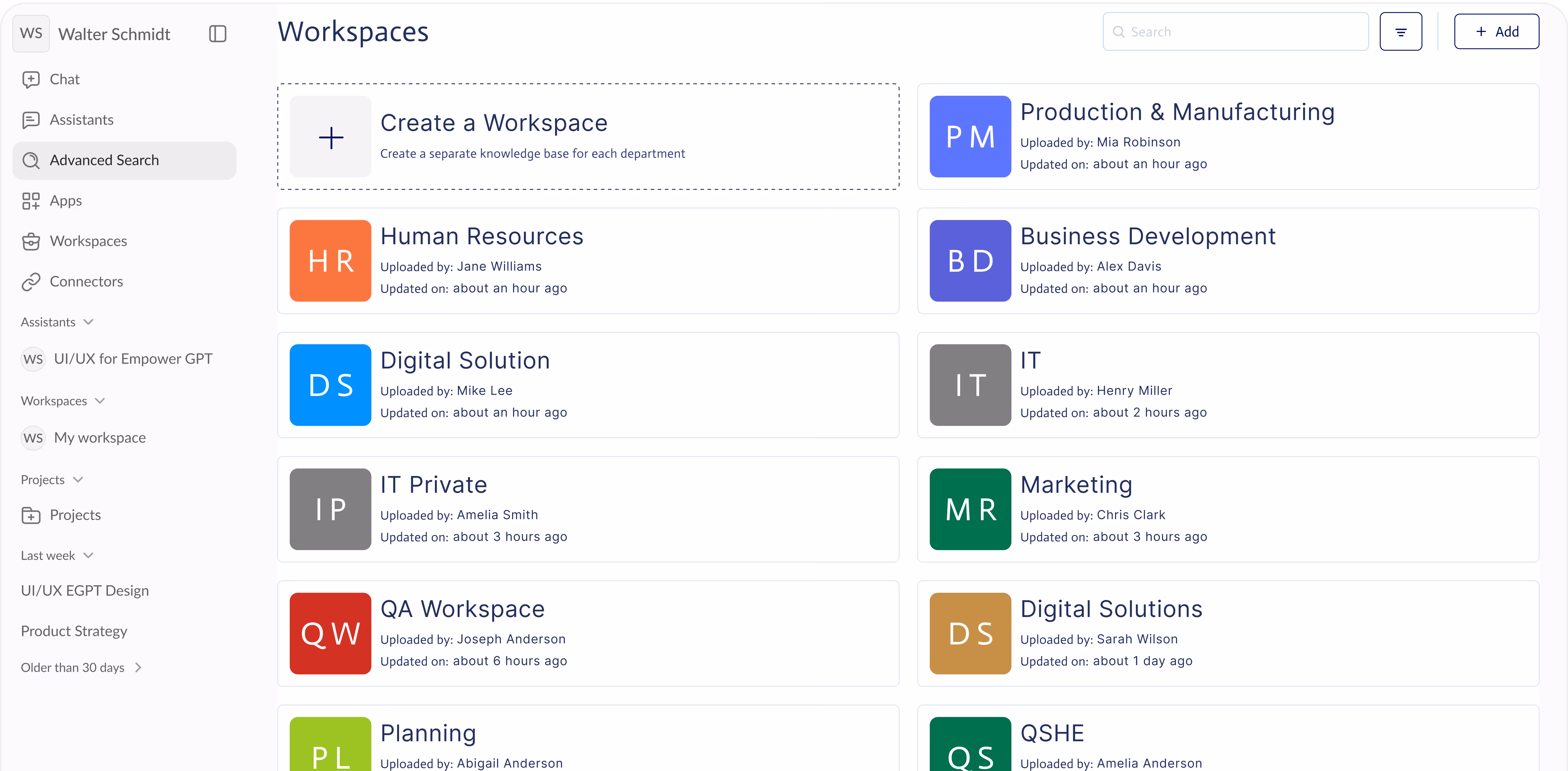 Zu „Meine Workspaces“ gehen: Navigieren Sie vom EmpowerGPT-Dashboard aus zum Workspace-Hub.